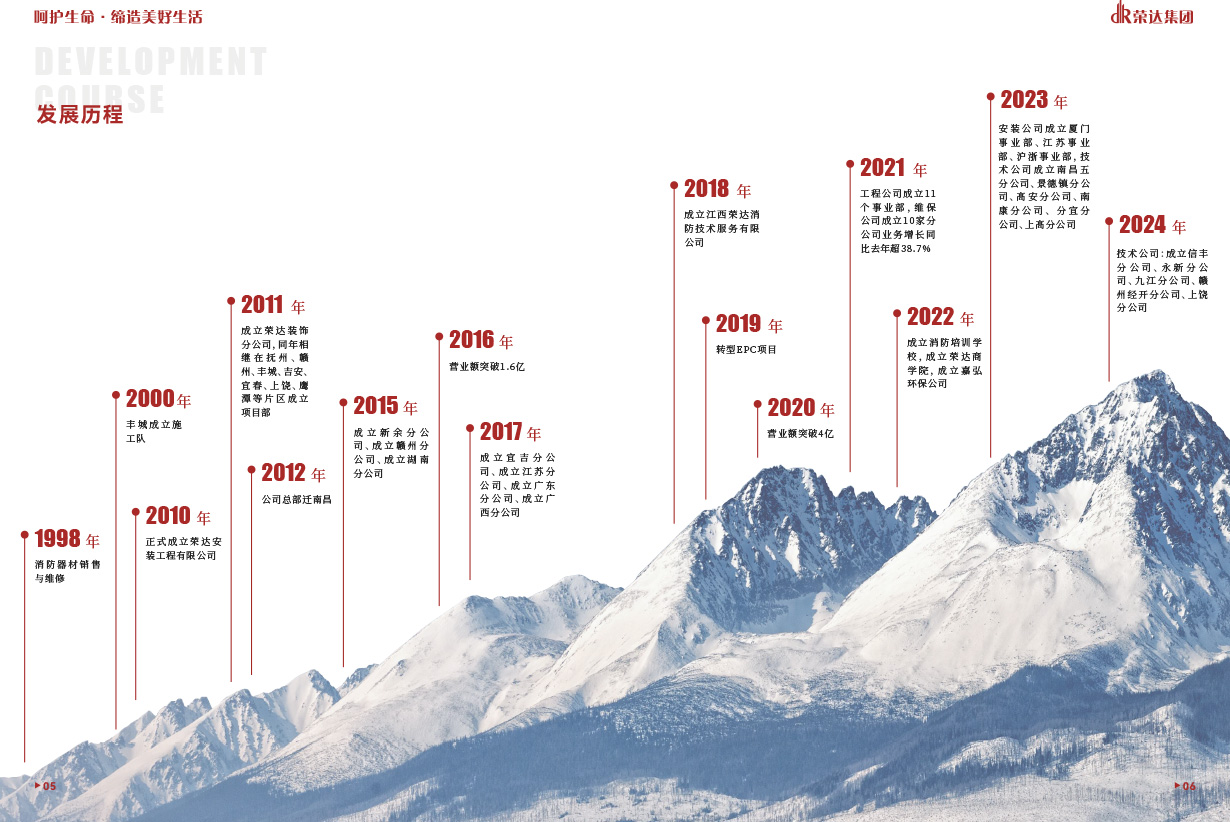 江西榮達是集機電、裝修、市政工程、總承包業務于一體的綜合型建筑企業集團。下屬榮達安裝、榮達技術、榮達培訓學校、嘉弘環保、冠升貿易五家子公司。公司業務遍布全國,2023年業務簽單10億元,員工500人,擁有執證專業技術人員336人。是江西省大的消防專業化直營企業。
